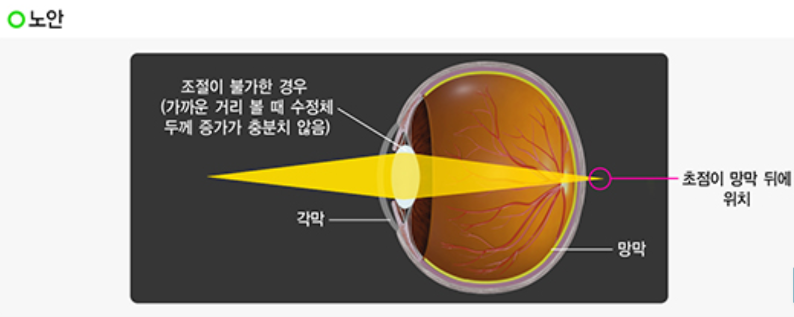 ✅ 먼 곳은 잘 보이는데, 가까운 곳을 볼 때만 초점이 잘 안 맞는다.