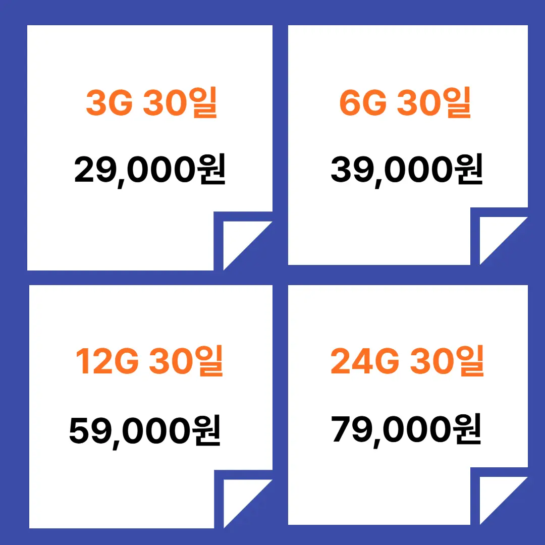 | 이용 방식 | 사전 가입 - 해외 통신사 자동 연결 - 데이터 사용 시 개시됨 |