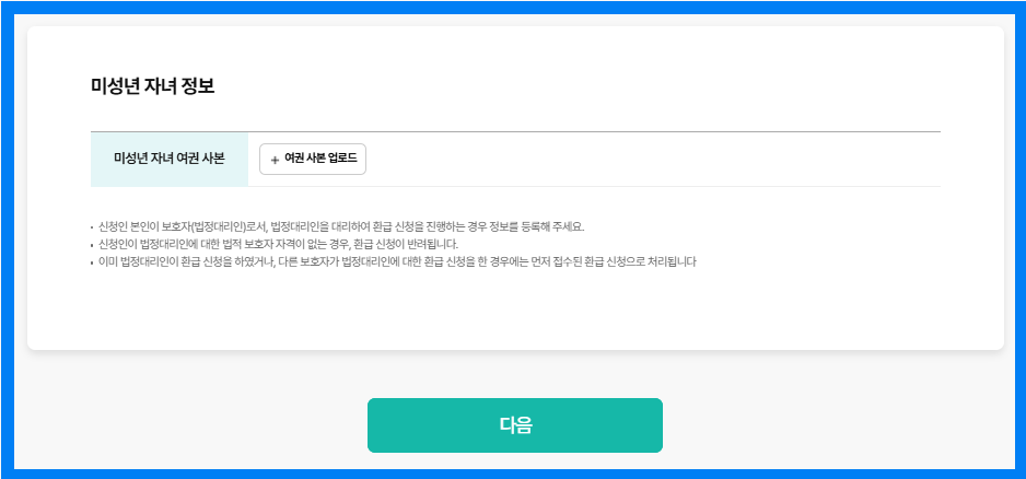 자녀가 더 있다면 추가하기 버튼을 눌러서 계속 진행하면 됩니다.