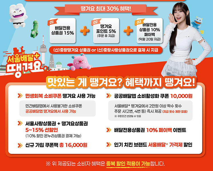 서울시는 농림축산식품부와 협력하여 공공배달앱 소비쿠폰도 함께 제공합니다.