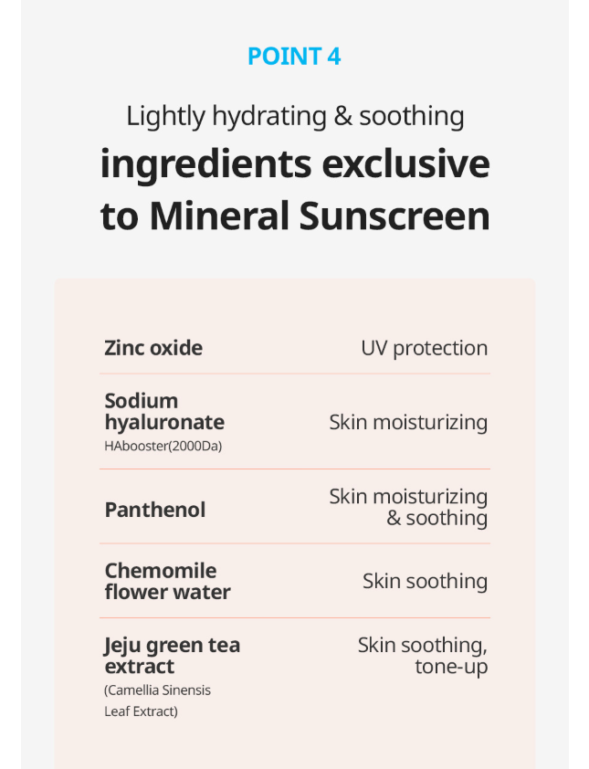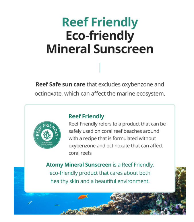 Atomy Mineral Sunscreen uses physical blockers that work by reflecting UV rays on the skin's surface rather than being absorbed into the skin. This is an important feature that makes it safe for those with sensitive skin.