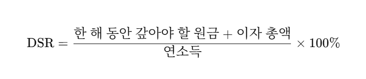 정의: 연간 갚아야 할 모든 대출의 원금 + 이자 상환액을 연소득으로 나눈 비율